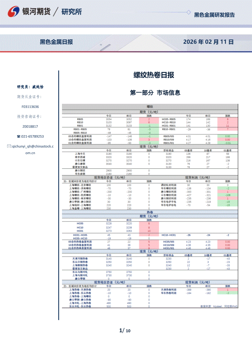 银河期货-螺纹热卷日报-260211