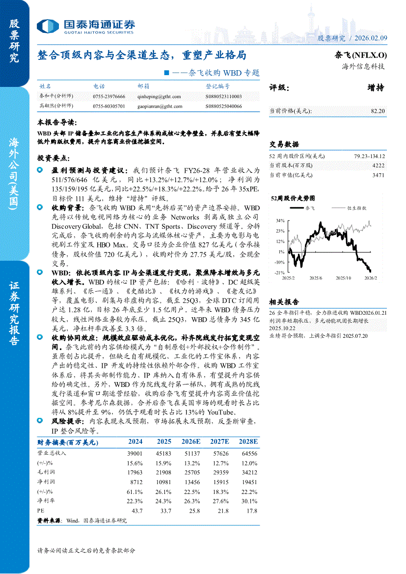 奈飞:国泰海通证券-奈飞-NFLX.US-收购WBD专题:整合顶级内容与全渠道生态,重塑产业格局-260209