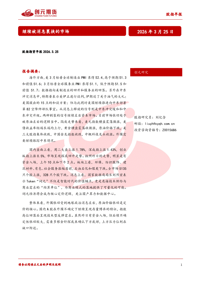 创元期货-股指期货早报:美联储加息预期抬头,地缘政治风险影响市场-260320