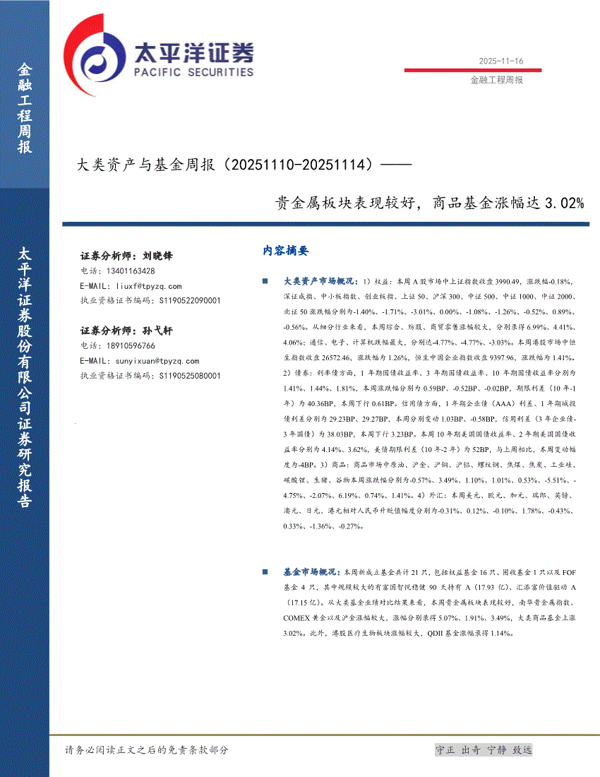 太平洋证券-大类资产与基金周报:贵金属板块表现较好,商品基金涨幅达3.02%-251116