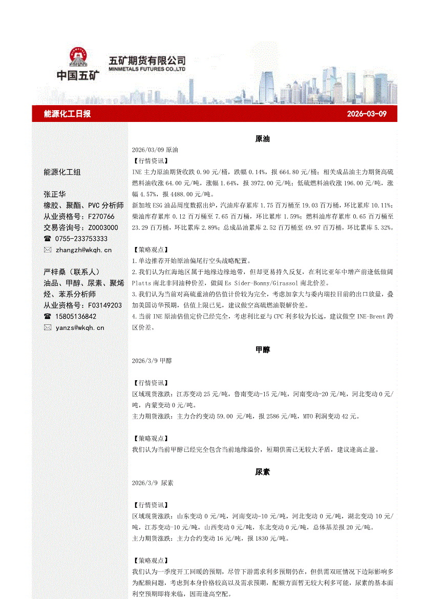 五矿期货-能源化工日报-260309