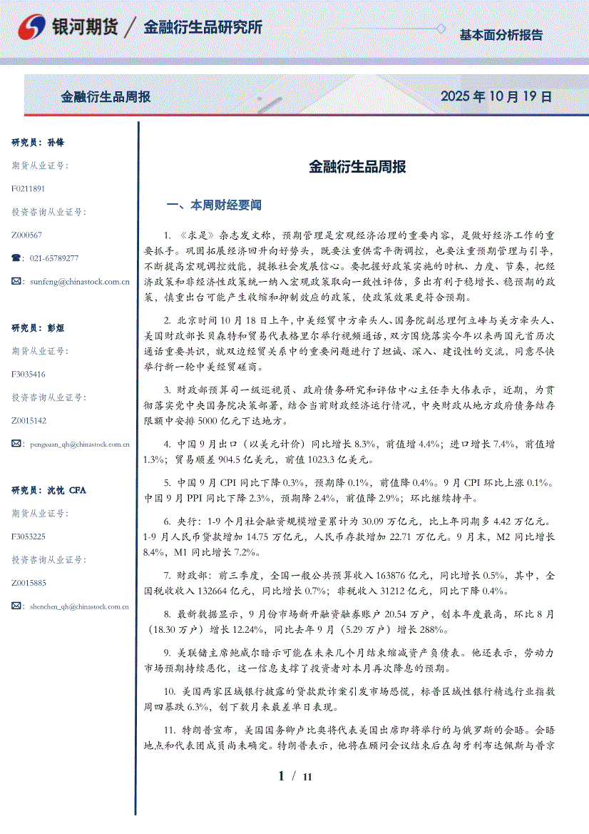 银河期货-国庆期间重要信息汇总及节后金融市场展望-251008