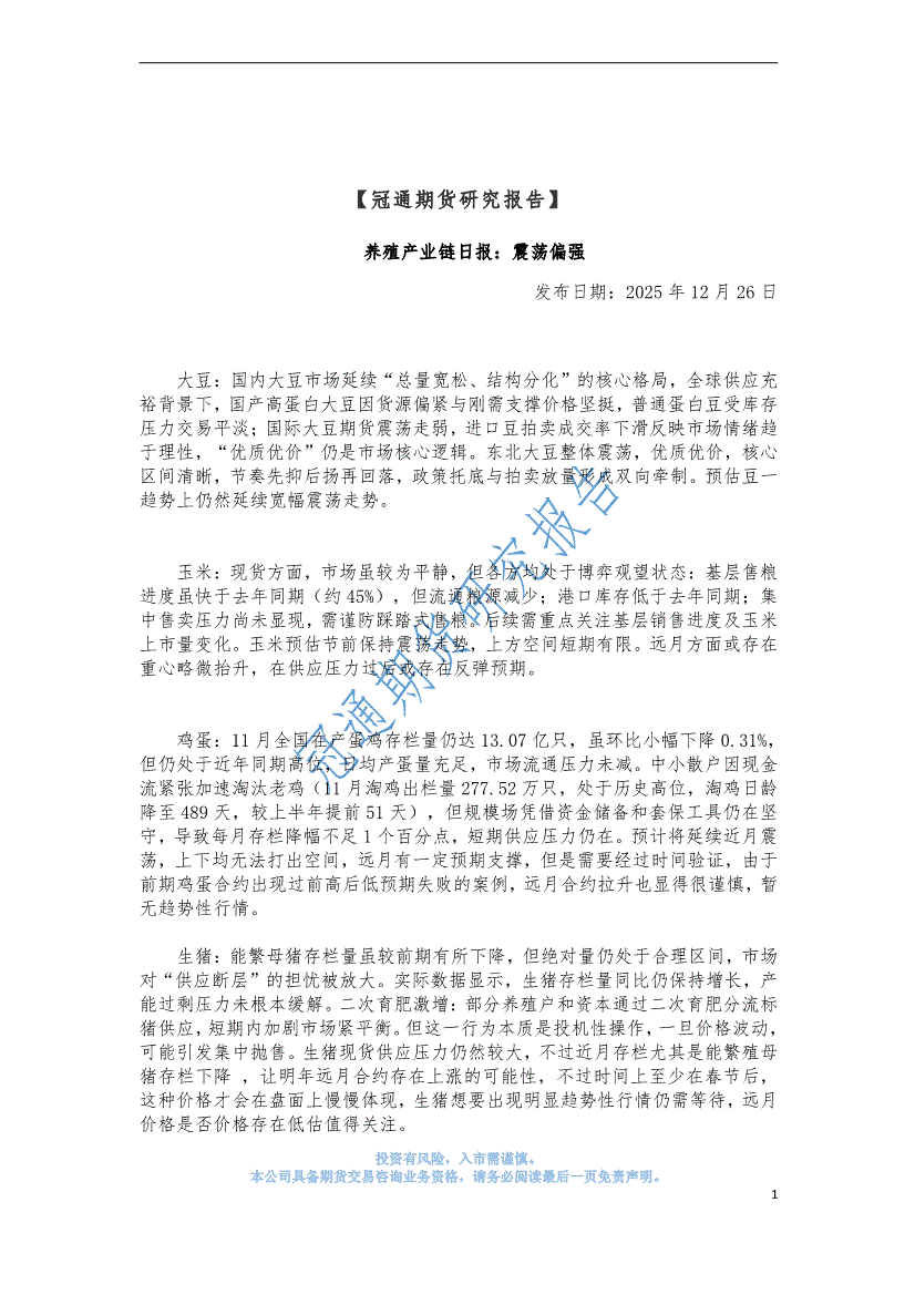 冠通期货-养殖产业链日报:震荡偏强-251226