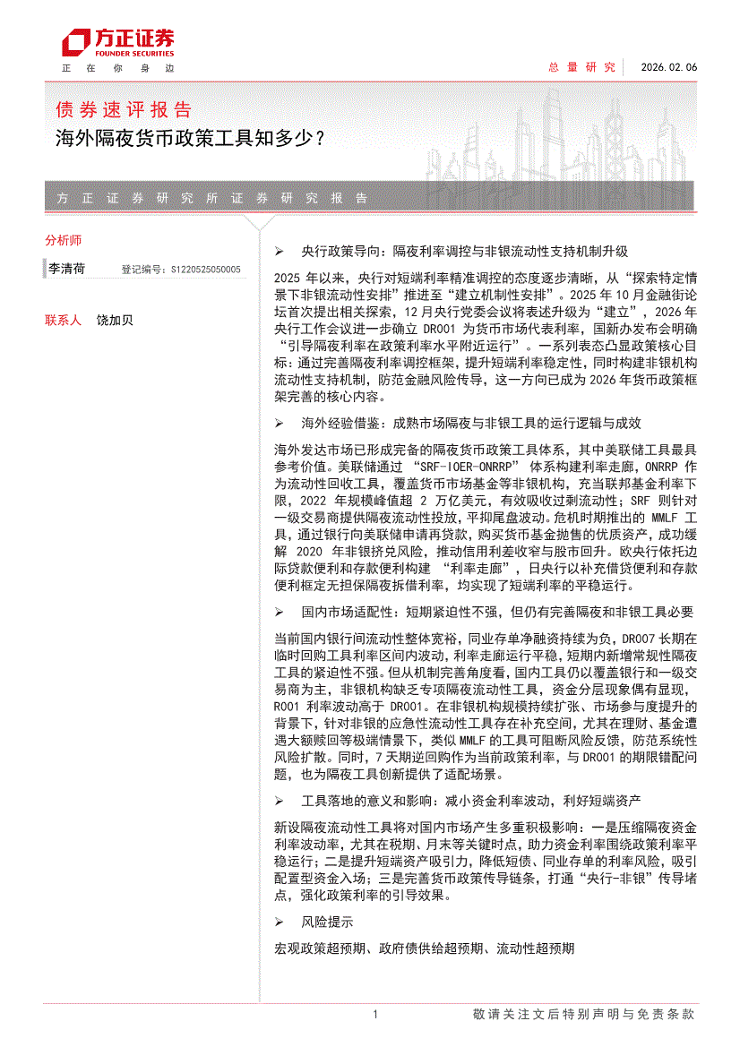 方正证券-债券速评报告:海外隔夜货币政策工具知多少?-260206