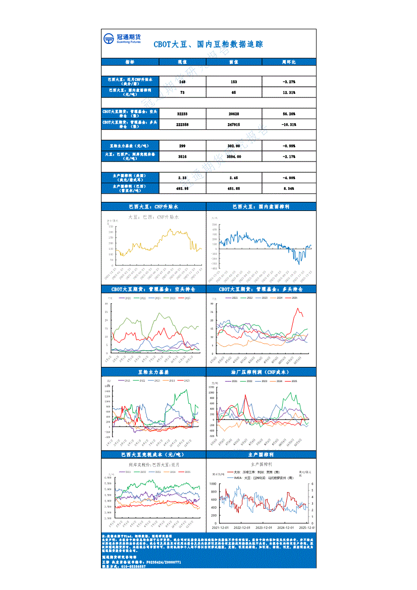 冠通期货-CBOT大豆、国内豆粕数据追踪-251223