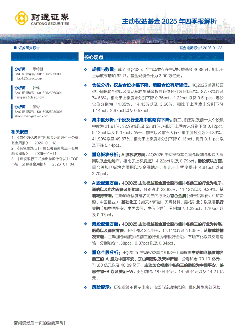 财通证券-公募基金周报:有色主题ETF成公募布局焦点-260111