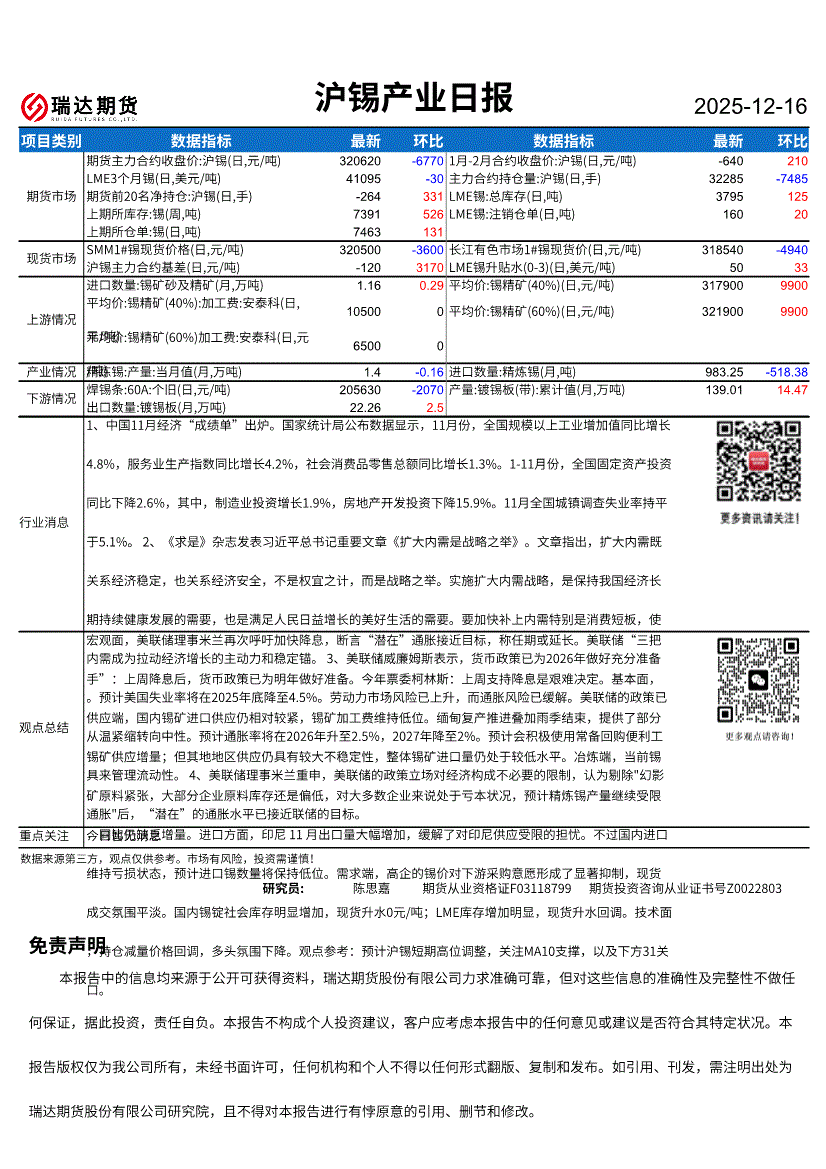 瑞达期货-沪铜市场周报:供给小增需求谨慎,沪铜或将震荡运行-251212