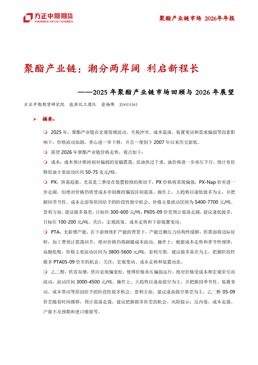 方正中期期货-2025年聚酯产业链市场回顾与2026年展望:聚酯产业链,潮分两岸阔,利启新程长-251215