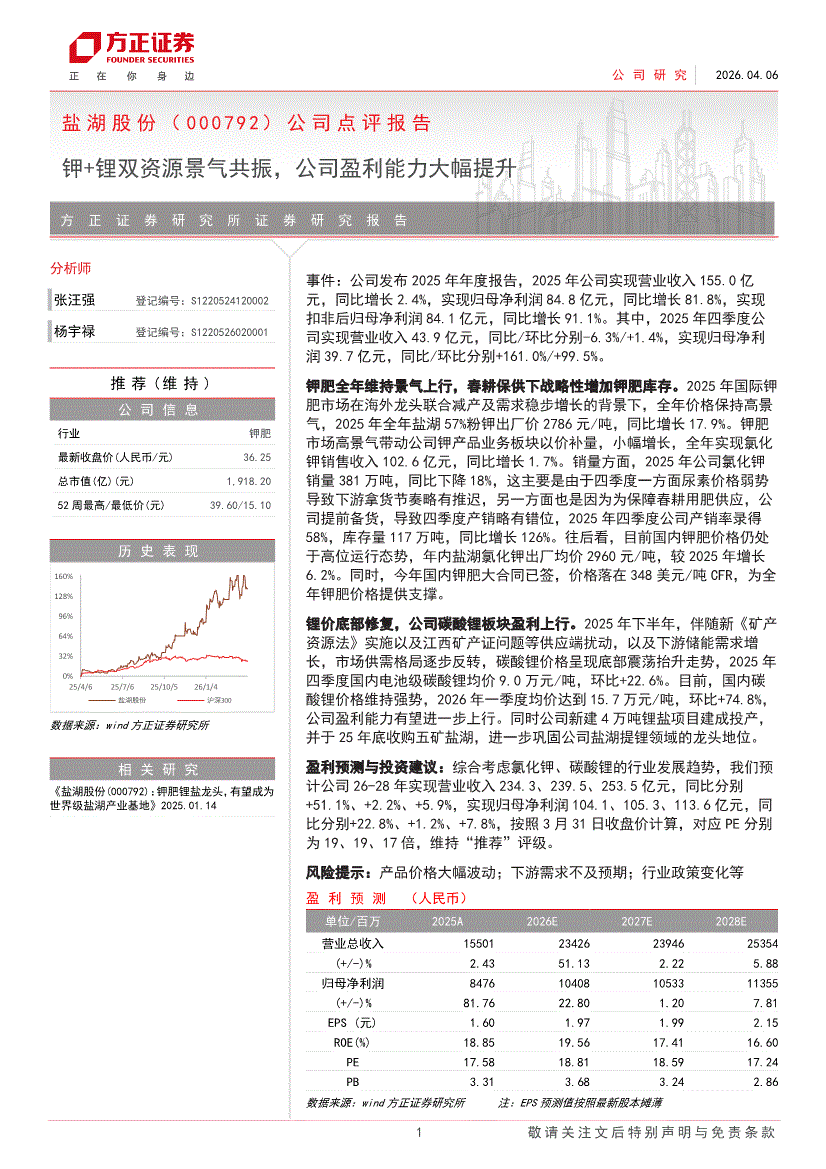盐湖股份:方正证券-盐湖股份-000792-公司点评报告:钾+锂双资源景气共振,公司盈利能力大幅提升-260406