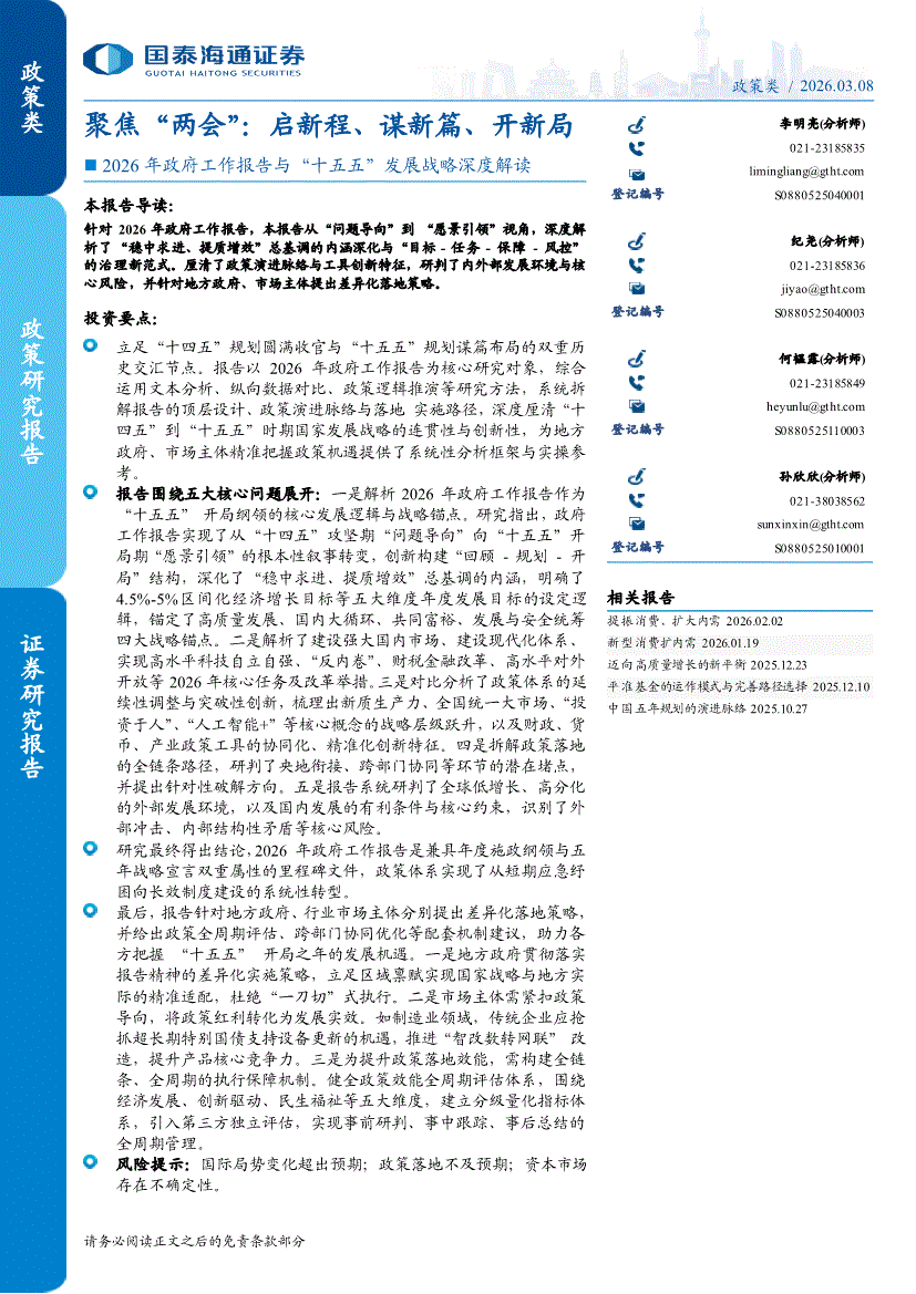国泰海通证券-2026年政府工作报告与“十五五”发展战略深度解读:聚焦“两会”,启新程、谋新篇、开新局-260308