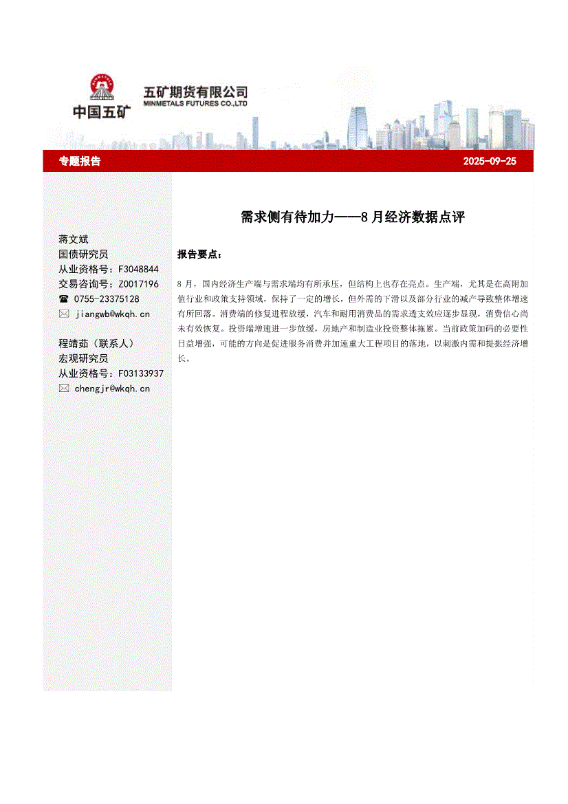 五矿期货-专题报告:需求侧有待加力——8月经济数据点评-250925