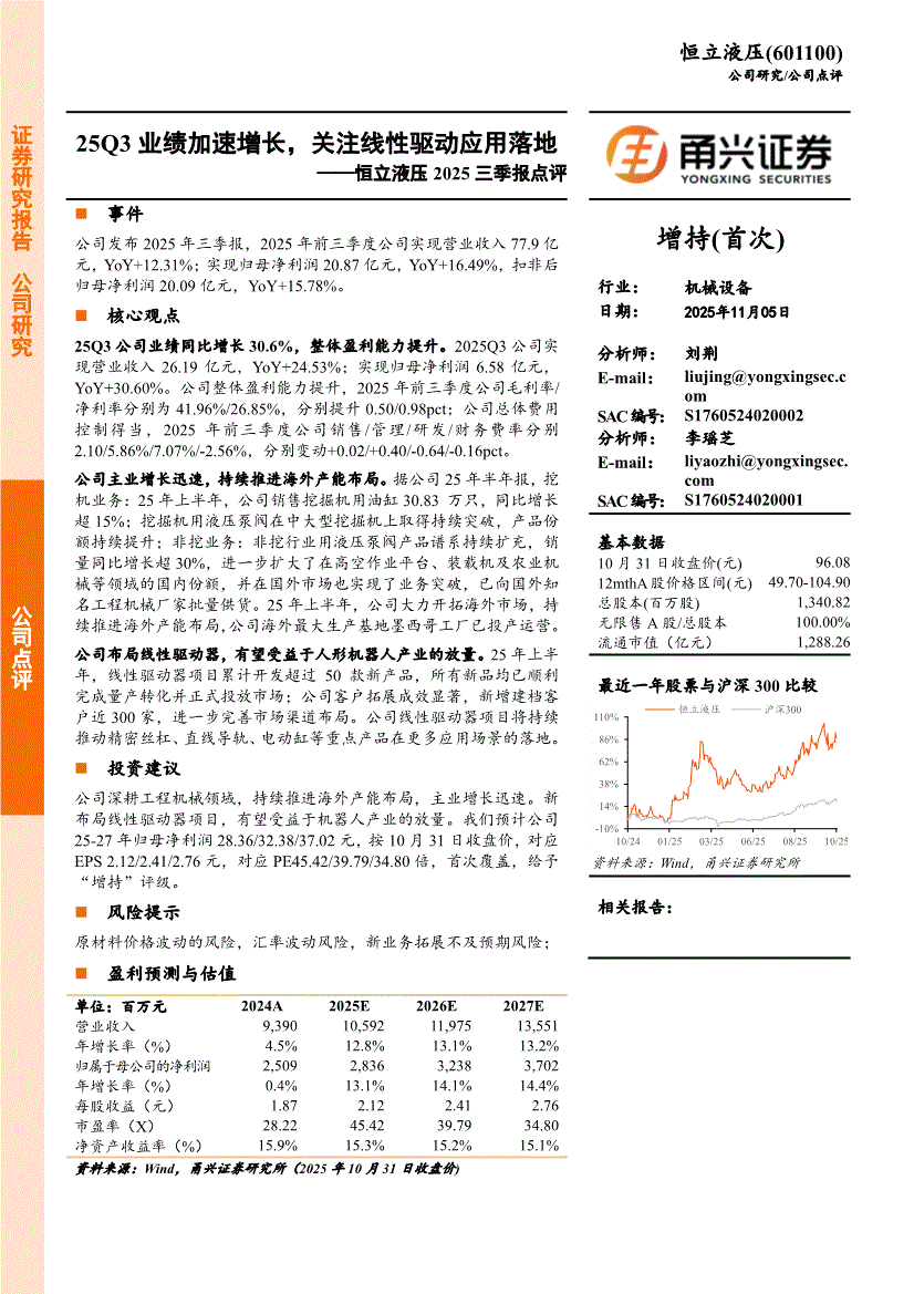 恒立液压:甬兴证券-恒立液压-601100-2025三季报点评:25Q3业绩加速增长,关注线性驱动应用落地-251105