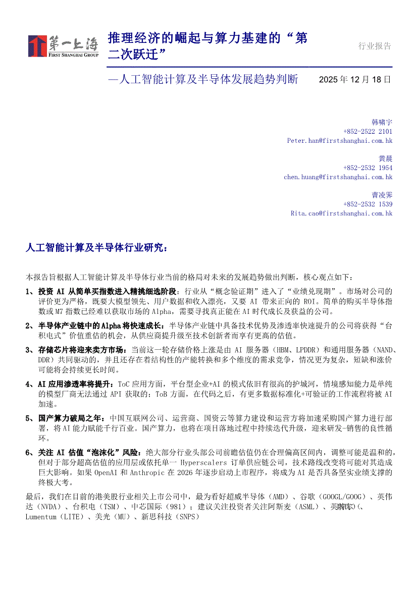 人工智能计算及半导体行业:第一上海-人工智能计算及半导体行业发展趋势判断:推理经济的崛起与算力基建的“第二次跃迁”-251218