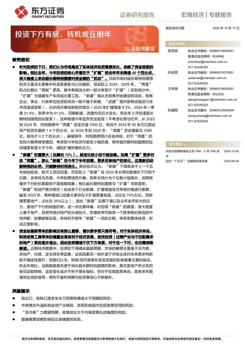 东方证券-10月经济展望:投资下方有底,转机或在明年-251017