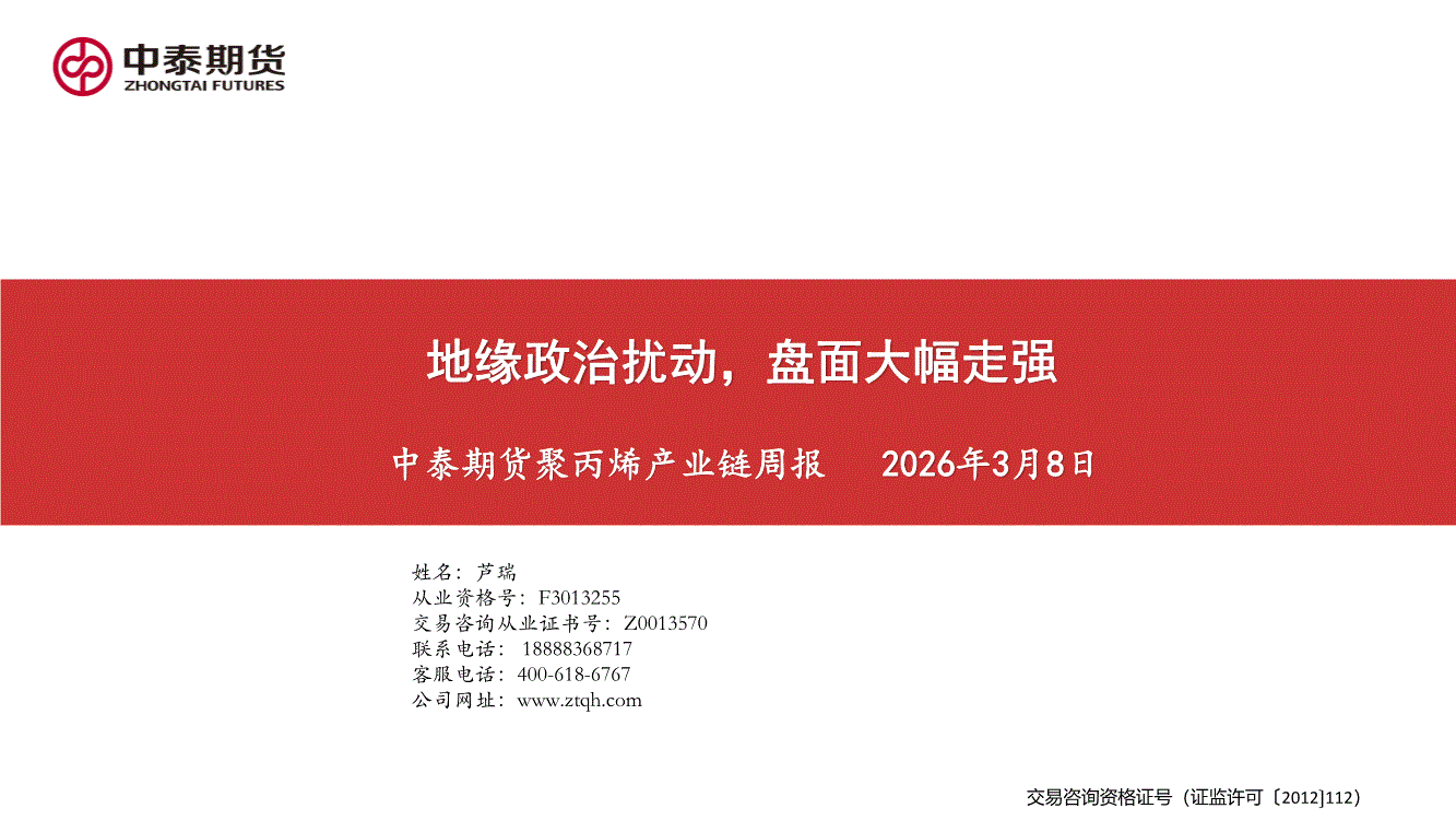 中泰期货-聚丙烯产业链周报:地缘政治扰动,盘面大幅走强-260308