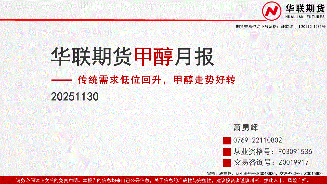 华联期货-甲醇月报:传统需求低位回升,甲醇走势好转-251130