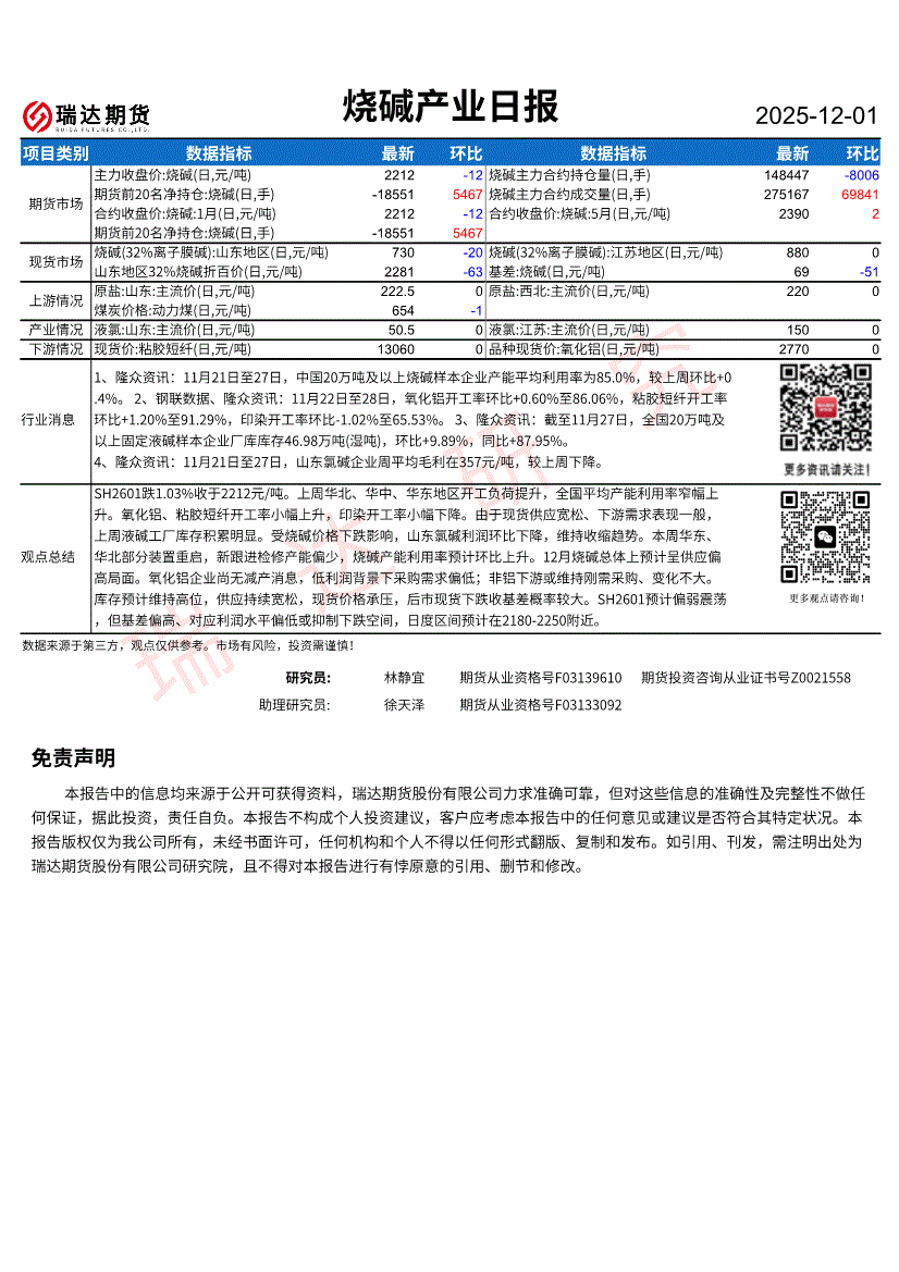 瑞达期货-烧碱产业日报-251201