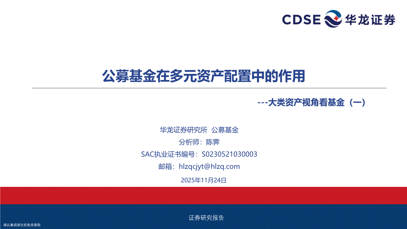 华龙证券-大类资产视角看基金(一):公募基金在多元资产配置中的作用-251124