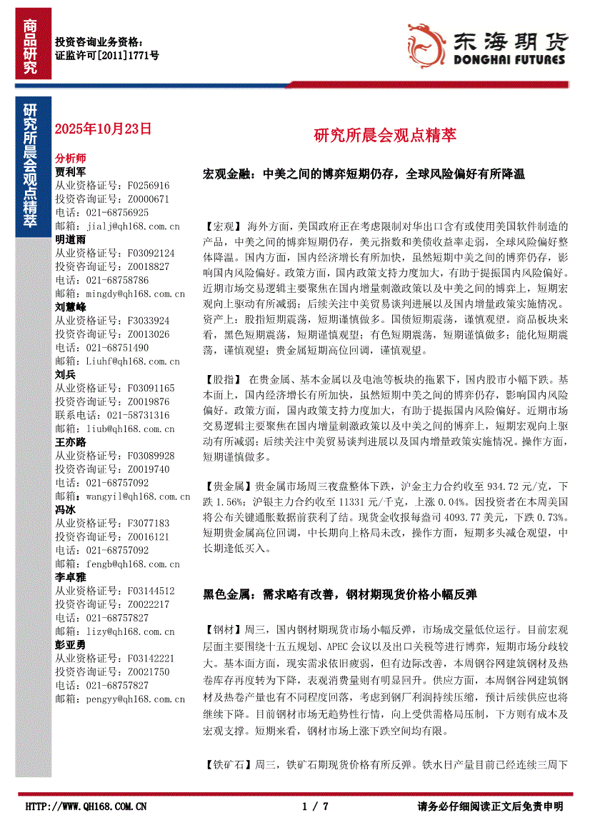 东海期货-研究所晨会观点精萃-251023