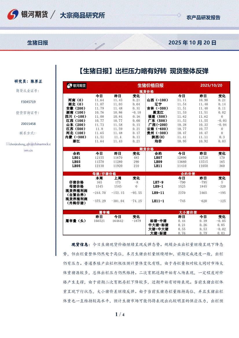 银河期货-【生猪日报】出栏压力略有好转,现货整体反弹-251020