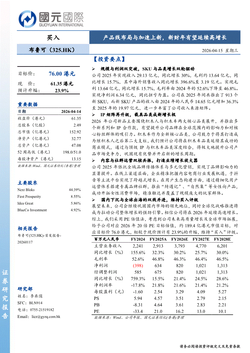 布鲁可:国元国际-布鲁可-0325.HK-产品线布局与加速上新,新财年有望延续高增长-260415