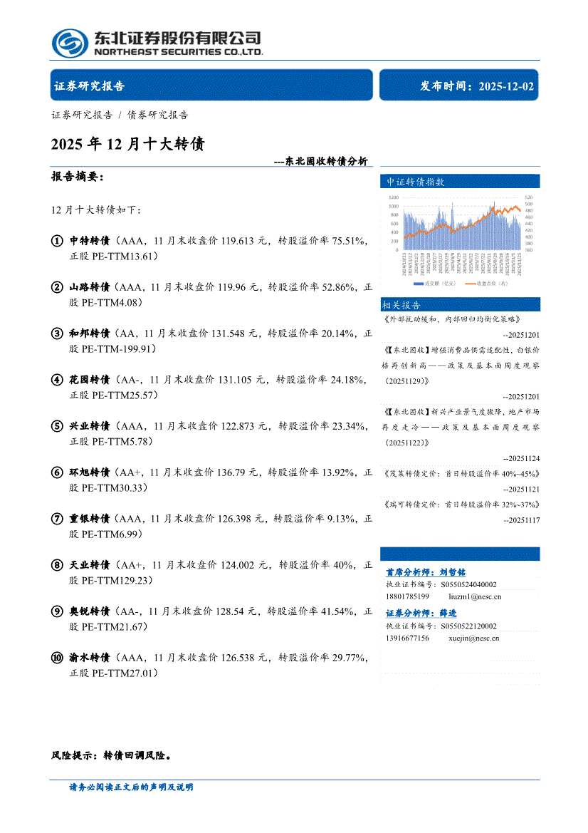 东北证券-固收转债分析:2025年12月十大转债-251202