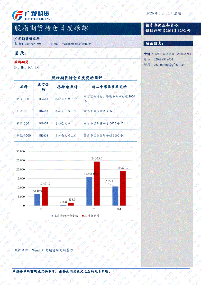 广发期货-股指期货持仓日度跟踪-260112