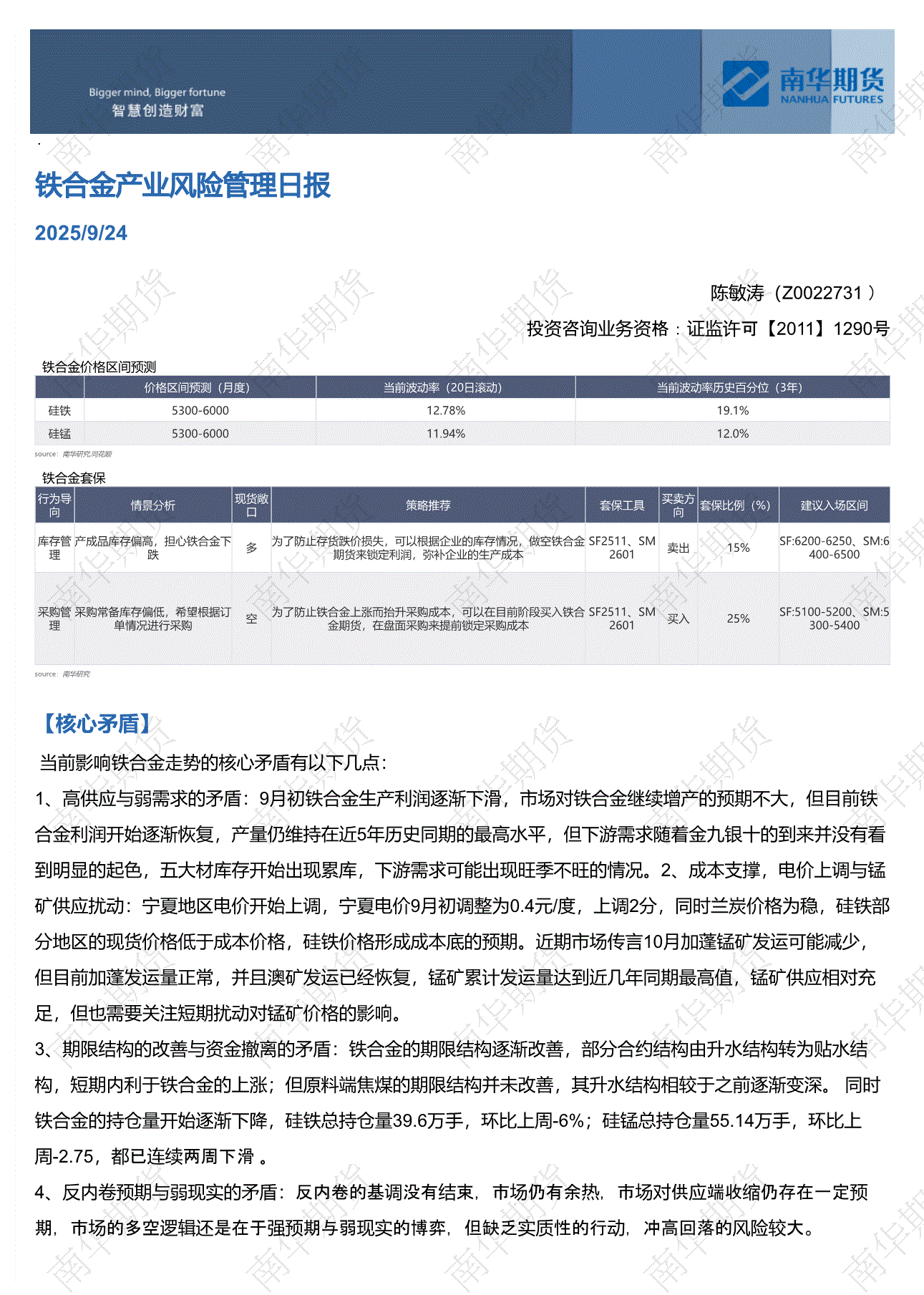 南华期货-铁合金周报:跟随煤炭,波动较大-250810