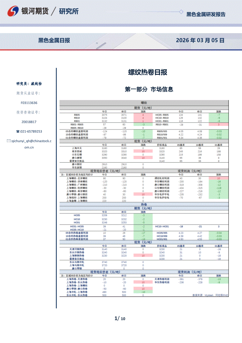 银河期货-螺纹热卷日报-260305