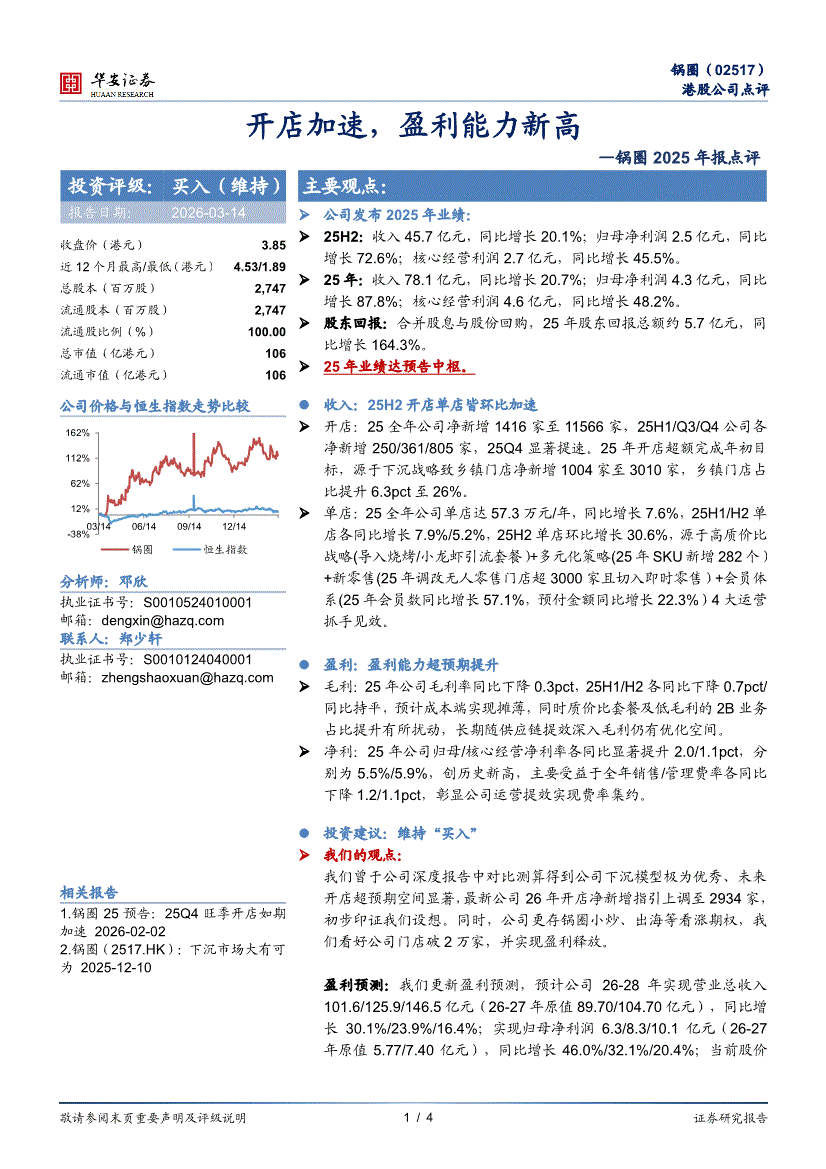 锅圈:华安证券-锅圈-2517.HK-2025年报点评:开店加速,盈利能力新高-260314