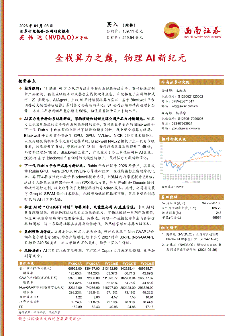 英伟达:西南证券-英伟达-NVDA.US-全栈算力之巅,物理AI新纪元-260108