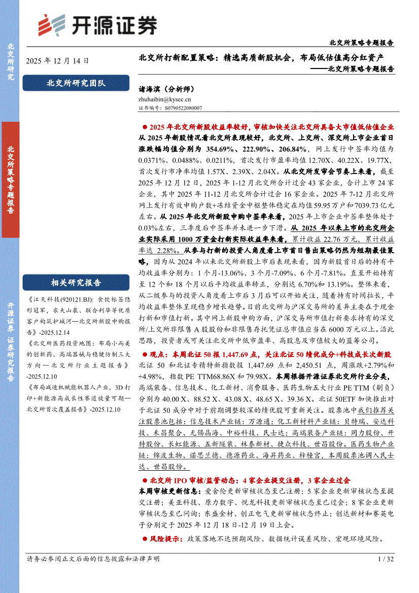 开源证券-北交所策略专题报告:北交所打新配置策略,精选高质新股机会,布局低估值高分红资产-251214
