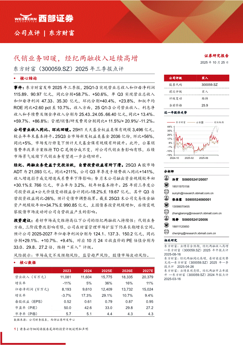 东方财富:西部证券-东方财富-300059-2025年三季报点评:代销业务回暖,经纪两融收入延续高增-251025