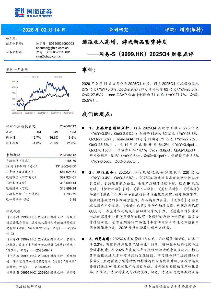 网易~S:国海证券-网易~S-9999.HK-2025Q4财报点评:递延收入高增,游戏新品蓄势待发-260214