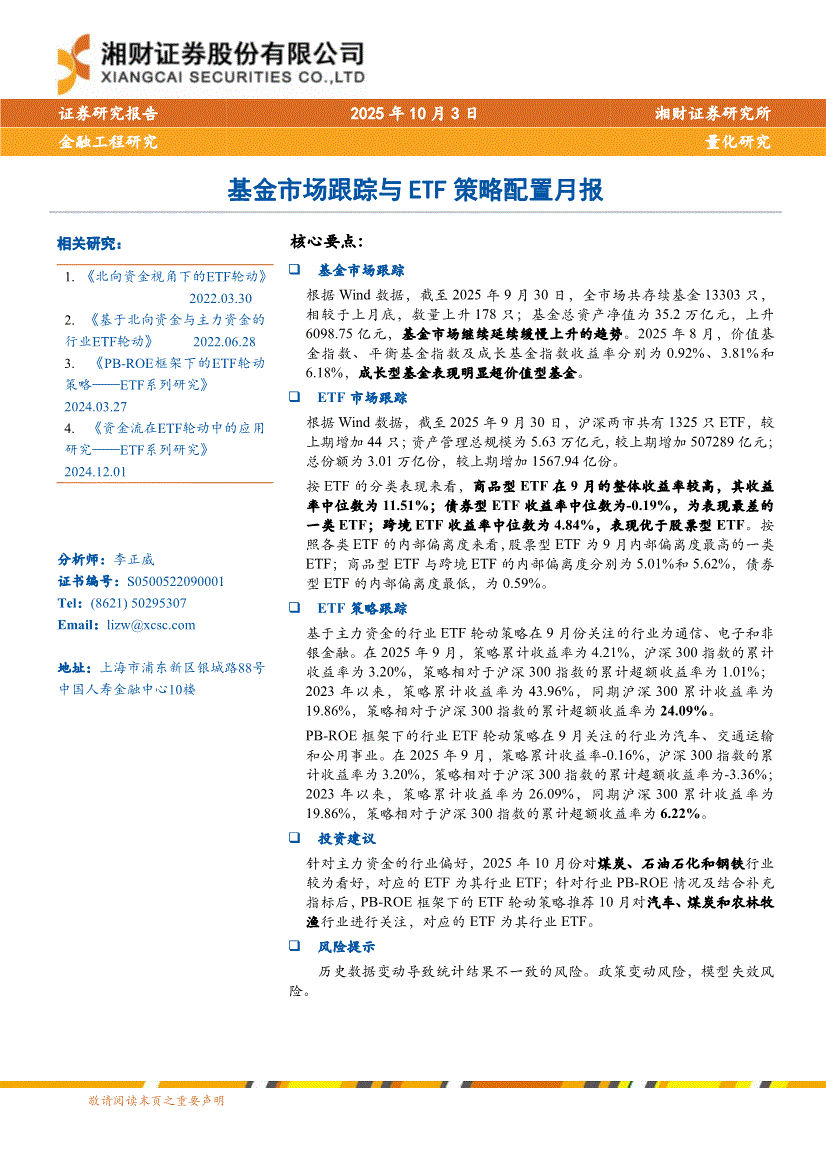 湘财证券-基金市场跟踪与ETF策略配置月报-251003