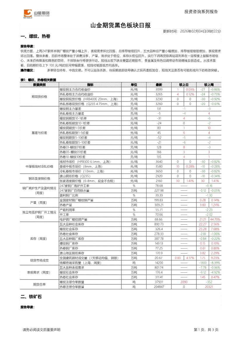 山金期货-黑色板块日报-260204