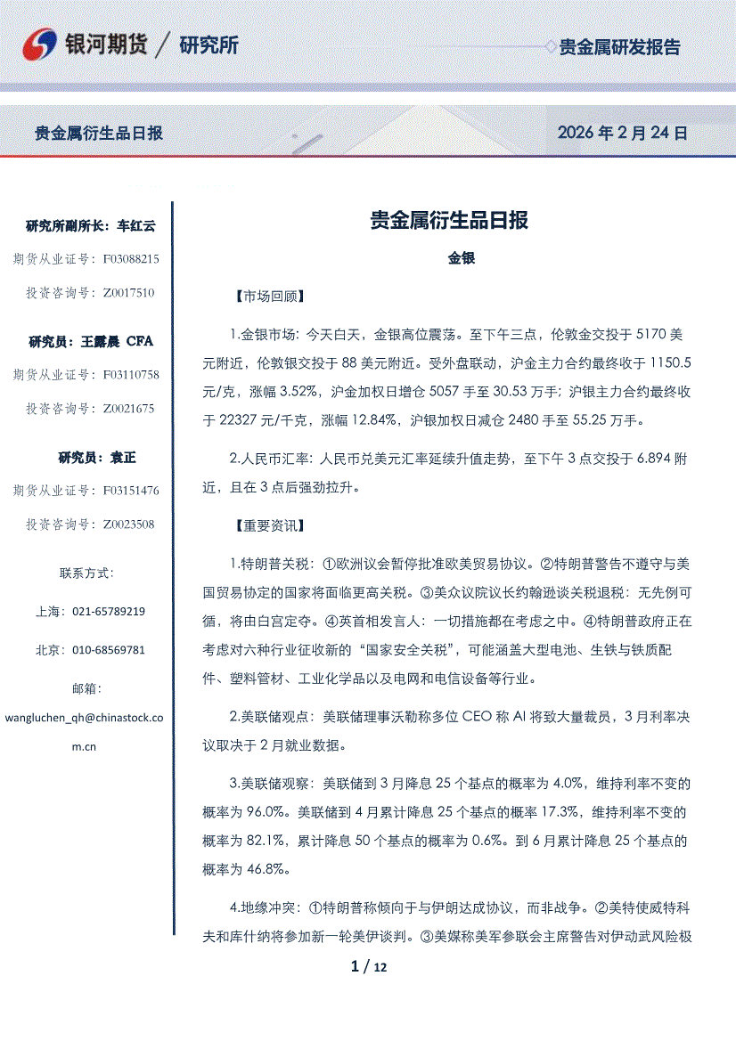 银河期货-贵金属衍生品日报-260224