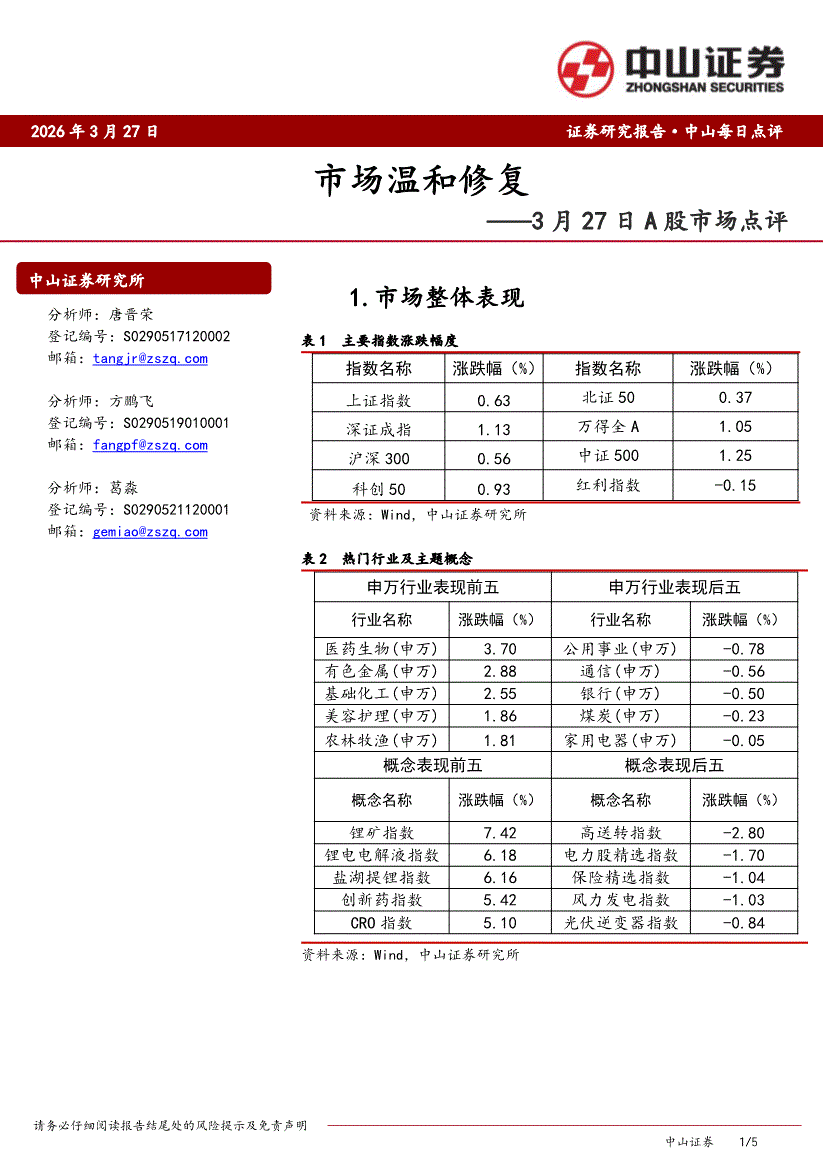 中山证券-3月27日A股市场点评:市场温和修复-260327
