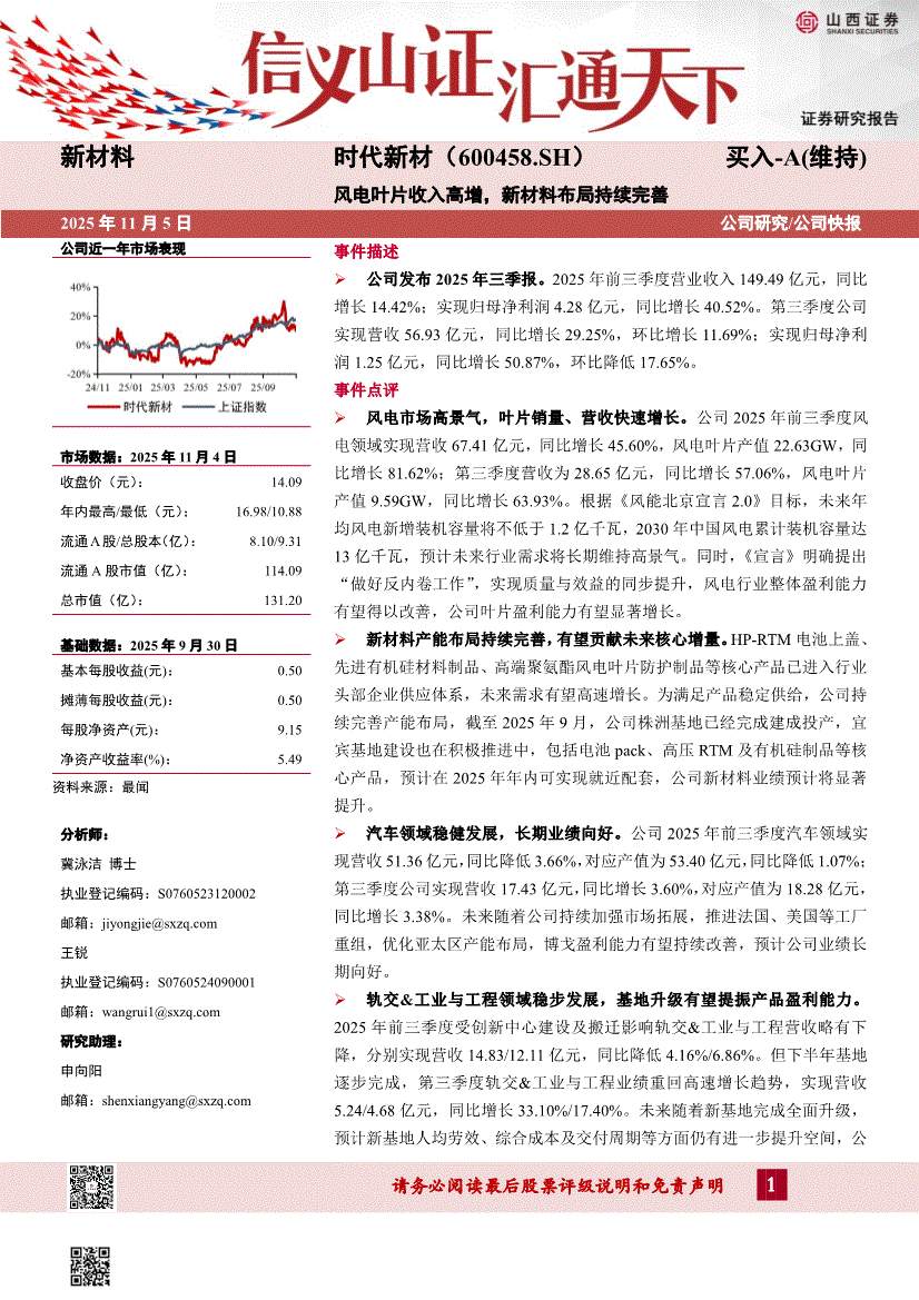 时代新材:山西证券-时代新材-600458-风电叶片收入高增,新材料布局持续完善-251105