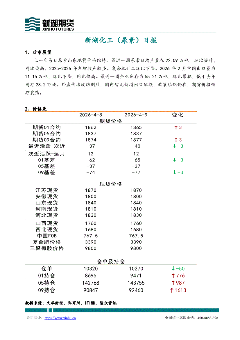 新湖期货-化工(尿素)日报-260409