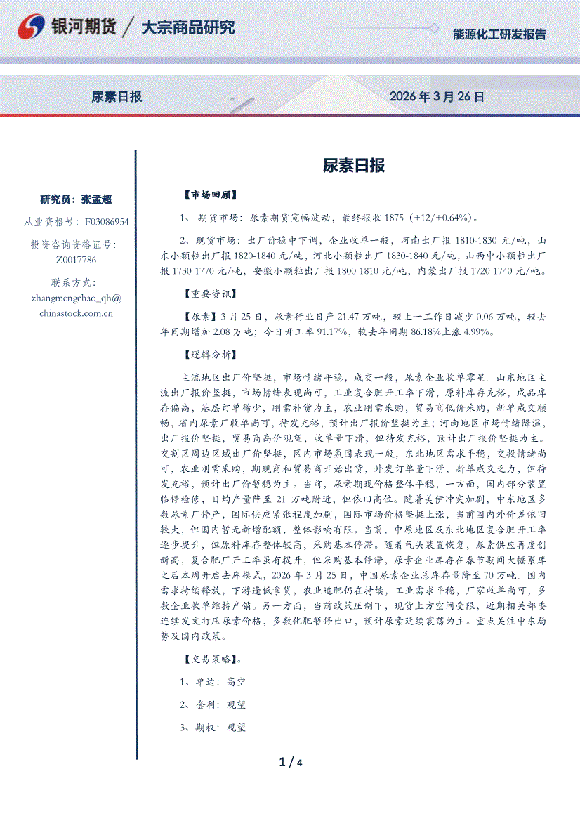银河期货-中东冲突僵持,甲醇宽幅震荡-260403