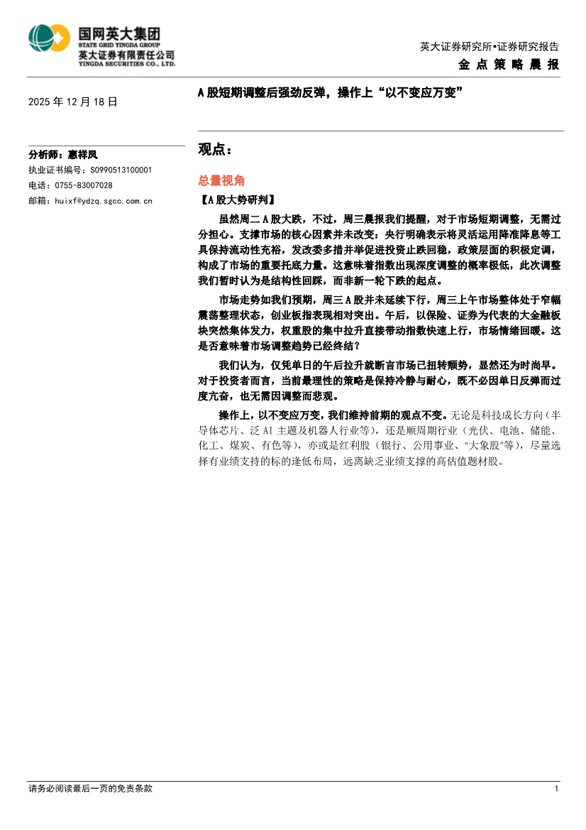 英大证券-每周投资早参:短期调整不改中期向好格局-251124