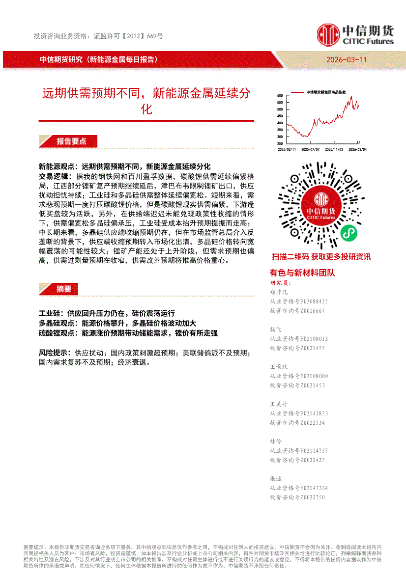 中信期货-新能源金属每日报告:远期供需预期不同,新能源金属延续分化-260311