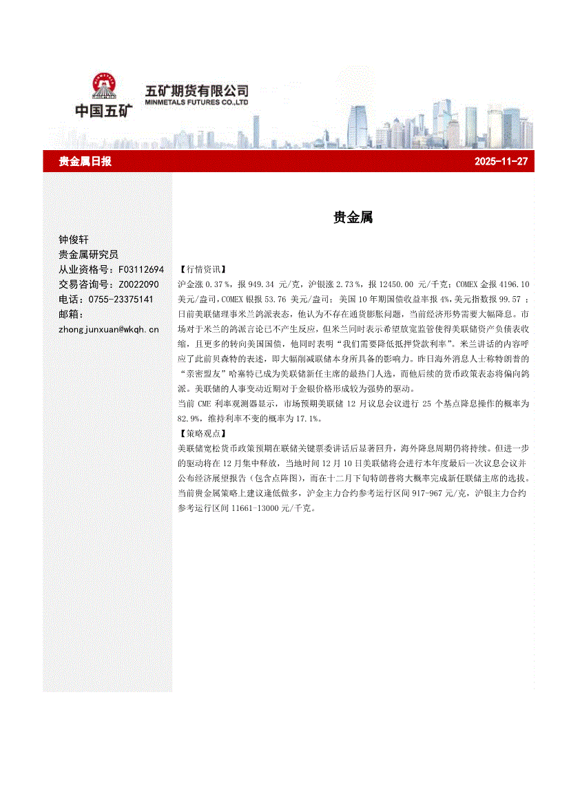 五矿期货-贵金属日报-251117