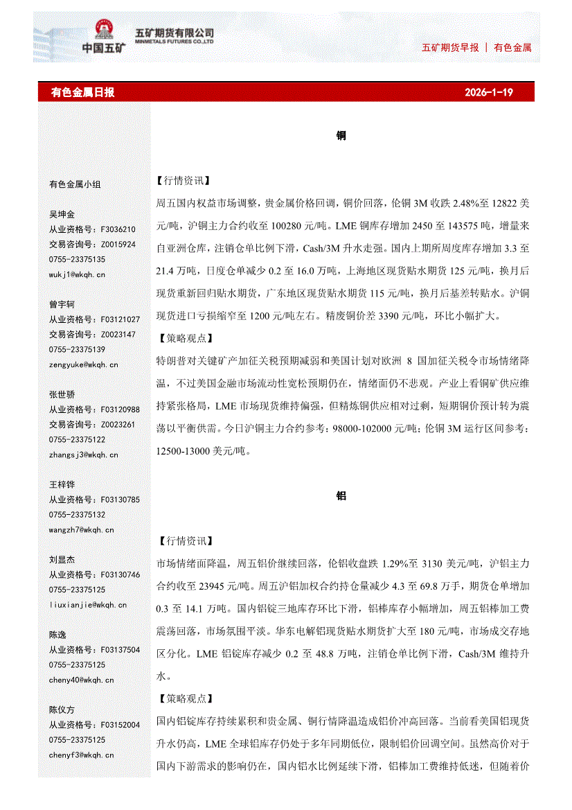 五矿期货-有色金属日报-260119