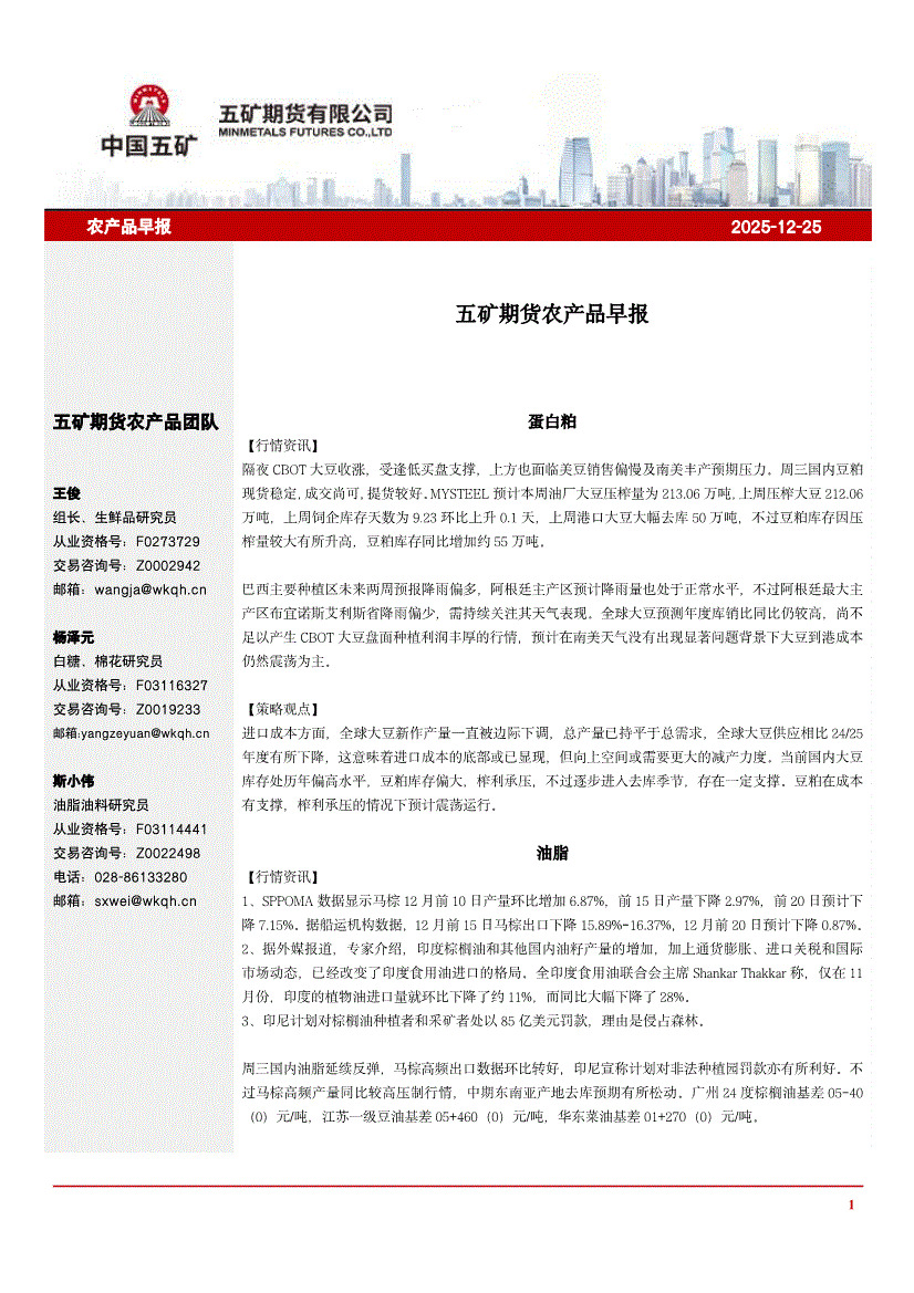 五矿期货-油脂:多空交织,观察高频数据指引-251216