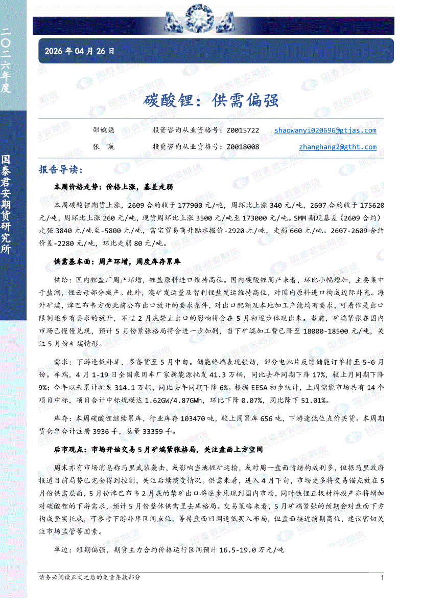 国泰君安期货-碳酸锂:供需偏强-260426
