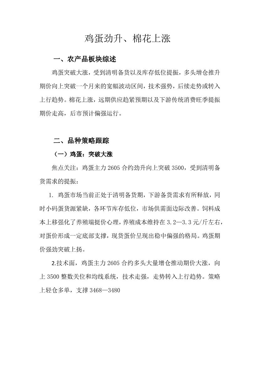 天富期货-鸡蛋劲升、棉花上涨-260326