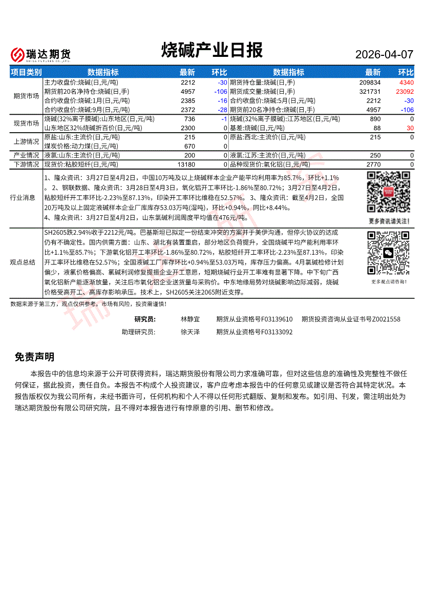 瑞达期货-烧碱产业日报-260407