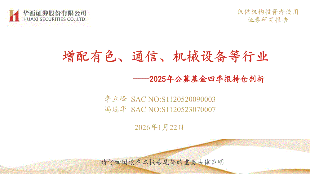 华西证券-2025年公募基金四季报持仓剖析:增配有色、通信、机械设备等行业-260122